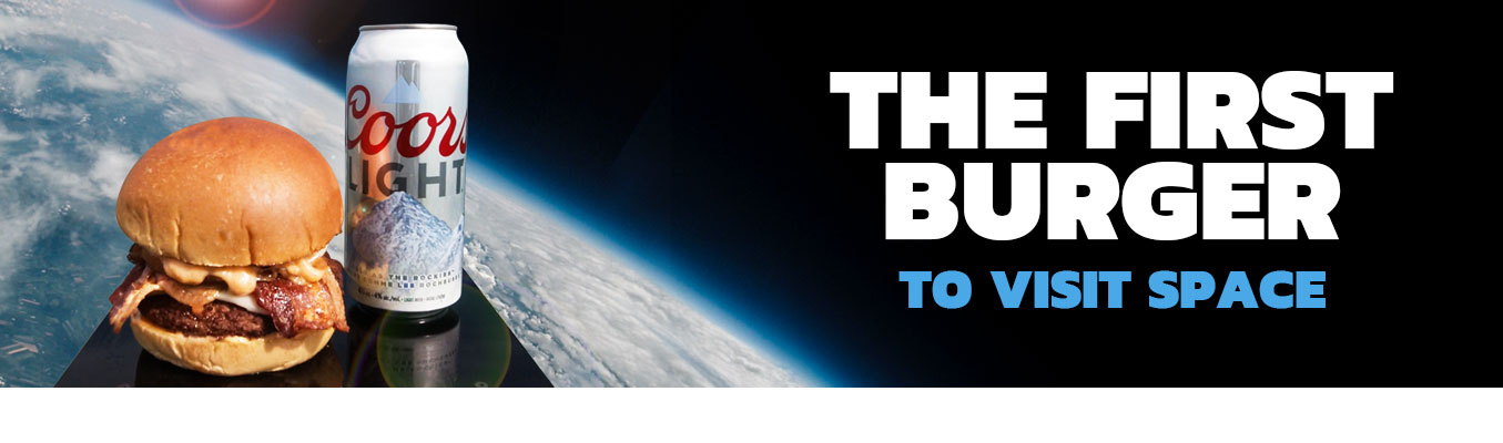 We are proud to offer burgers that are literally “out of this world” – and now you have the proof! With our signature burger, the Captain Flam, our goal was to literally send it among the stars, with the help of the team at Sent into Space and in partnership with Coors Light.